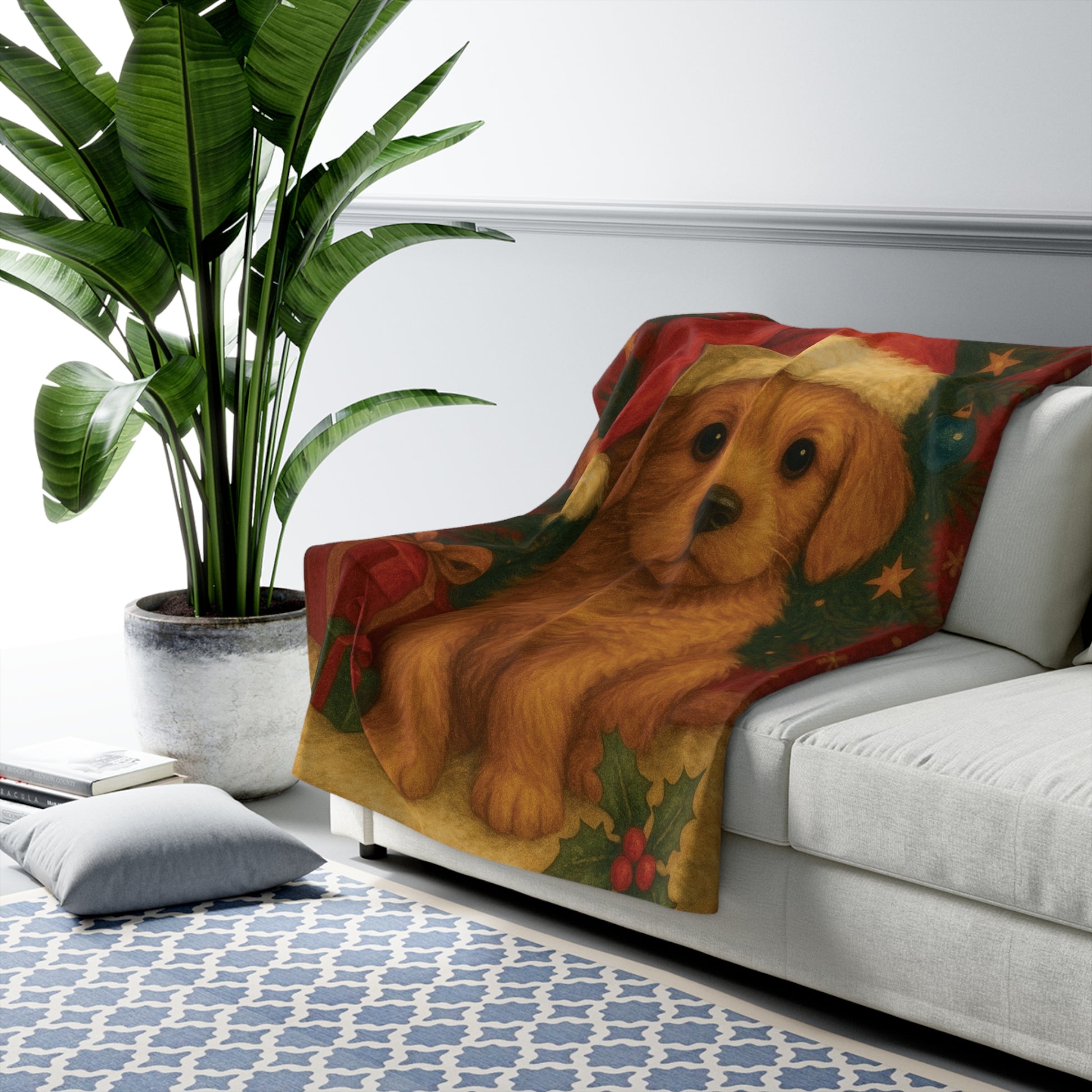 Cozy Christmas Puppy Sherpa Fleece Blanket | Holiday Gift for Dog Lovers | Plush Throw for Winter, Home Décor, Kids Room