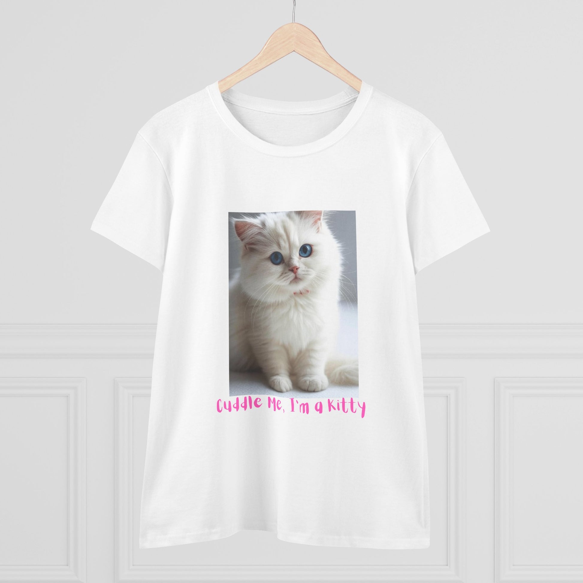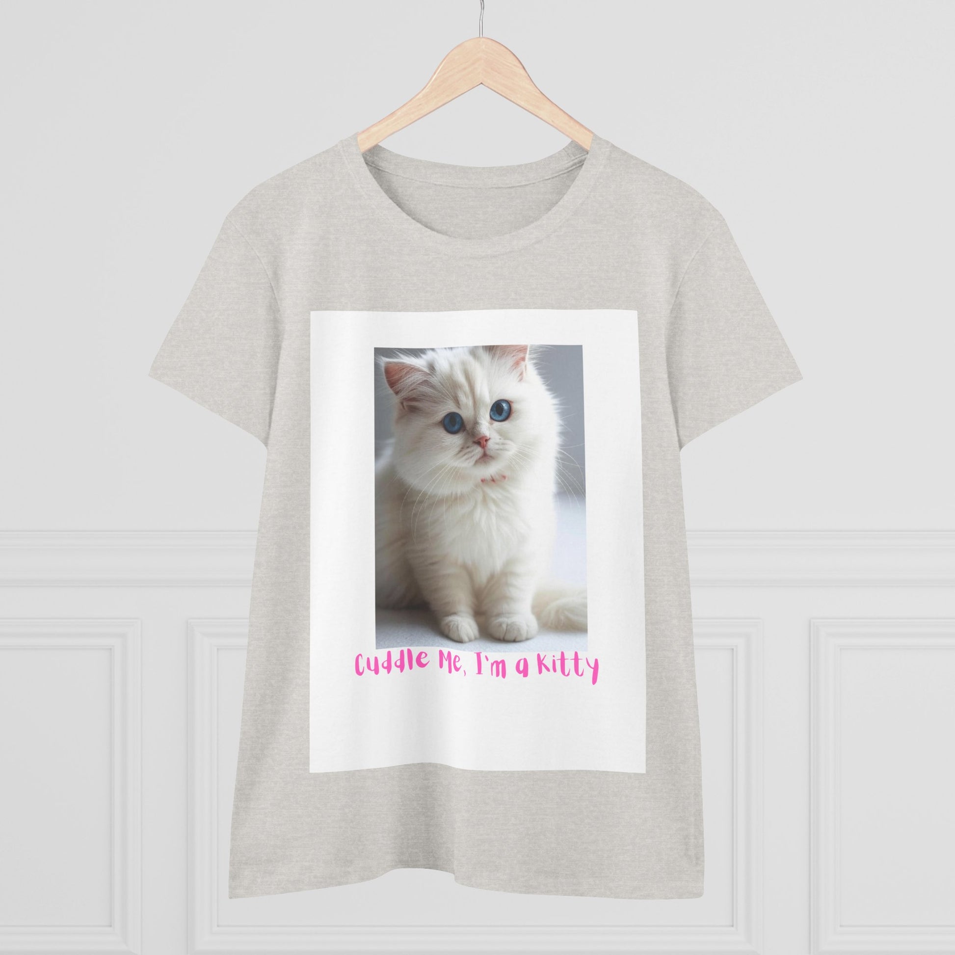Discover the perfect blend of comfort and style with our Women's Midweight Cotton Tee. Featuring a charming design of an adorable kitten, this tee radiates a warm and playful vibe, perfect for animal lovers. The semi-fitted cut and soft fabric make it an excellent choice for casual outings or lounging at home. Ideal for warm summer days or cozy fall layers, it's a lovely addition to any wardrobe and makes a great gift for birthdays or pet-themed celebrations. Whether you're celebrating a cat lover or treating yourself, this tee brings joy and comfort to any occasion.