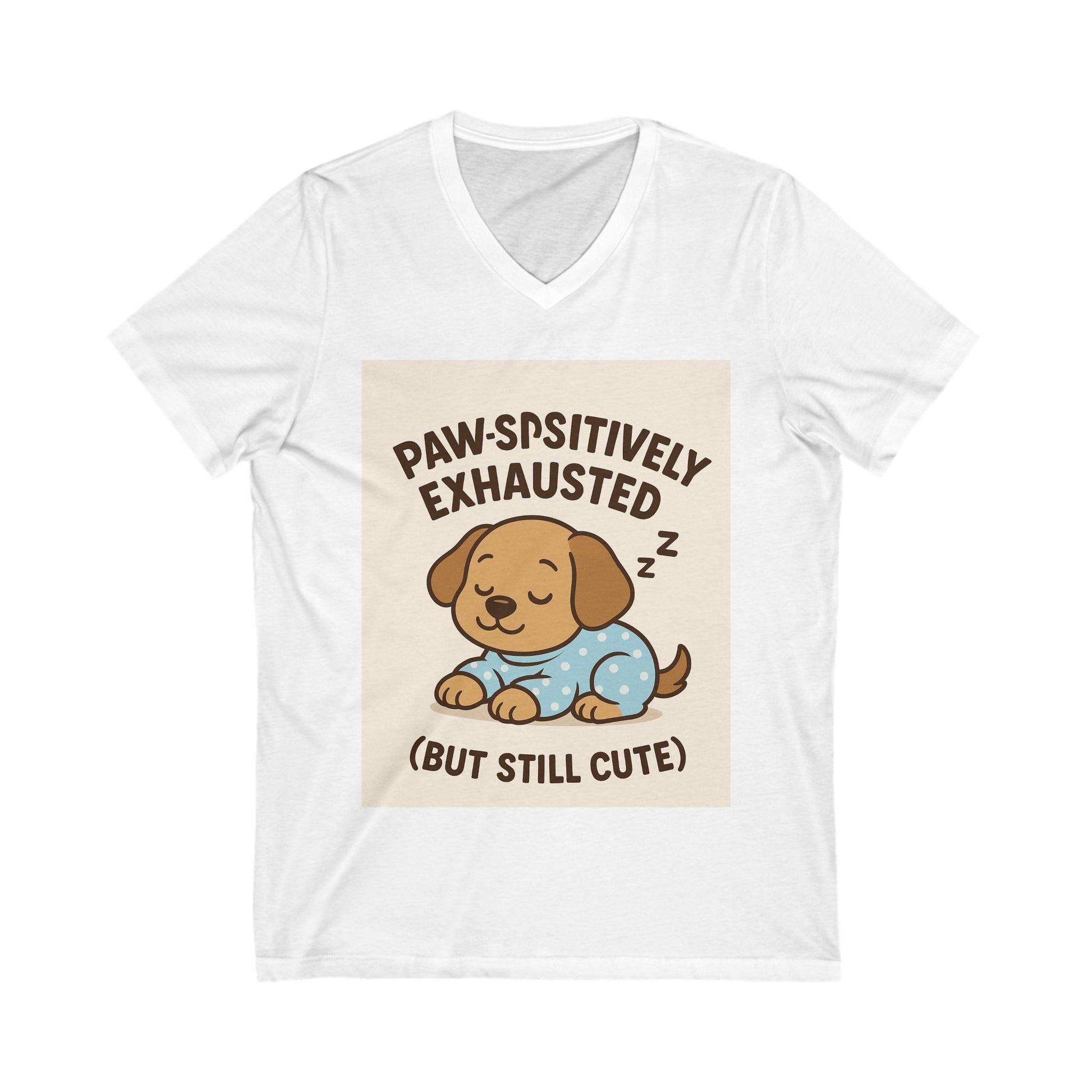 Pawsitively Exhausted Tee, Cute Dog Graphic V-Neck Shirt, Pet Lover Gift, Cozy Animal Tee, Funny Dog Shirt