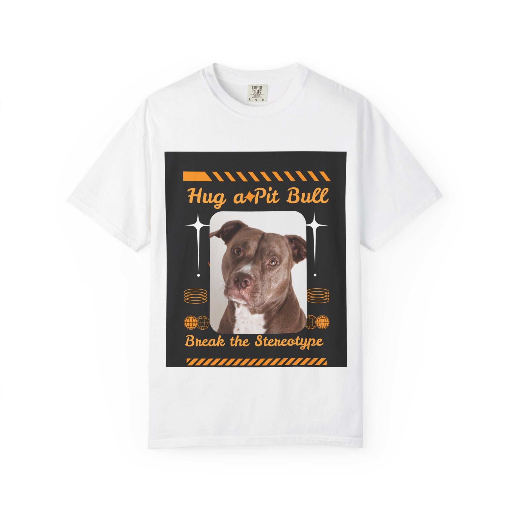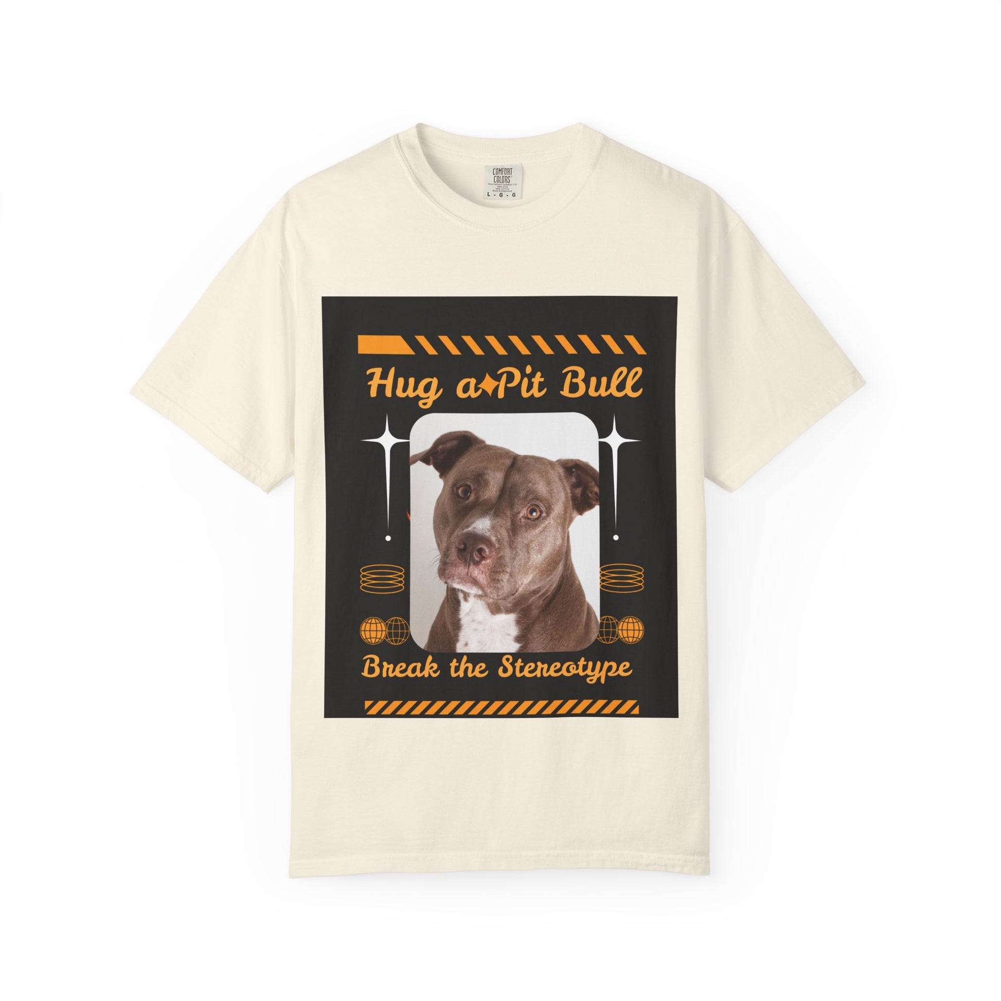 This unisex garment-dyed t-shirt radiates a comfortable and casual vibe, making it perfect for everyday wear. The unique design features a heartfelt message that encourages embracing and breaking stereotypes, making it an excellent conversation starter. Ideal for animal lovers, this tee is perfect for anyone who wants to showcase their love for pets, especially pit bulls, while contributing to a positive message. It's a versatile addition to any wardrobe, suitable for casual outings, dog park visits, or cozy days at home. This t-shirt makes a thoughtful gift for animal enthusiasts during holidays like National Dog Day or as part of a birthday gift for a friend who loves dogs. Celebrate love, acceptance, and kindness with this stylish tee!