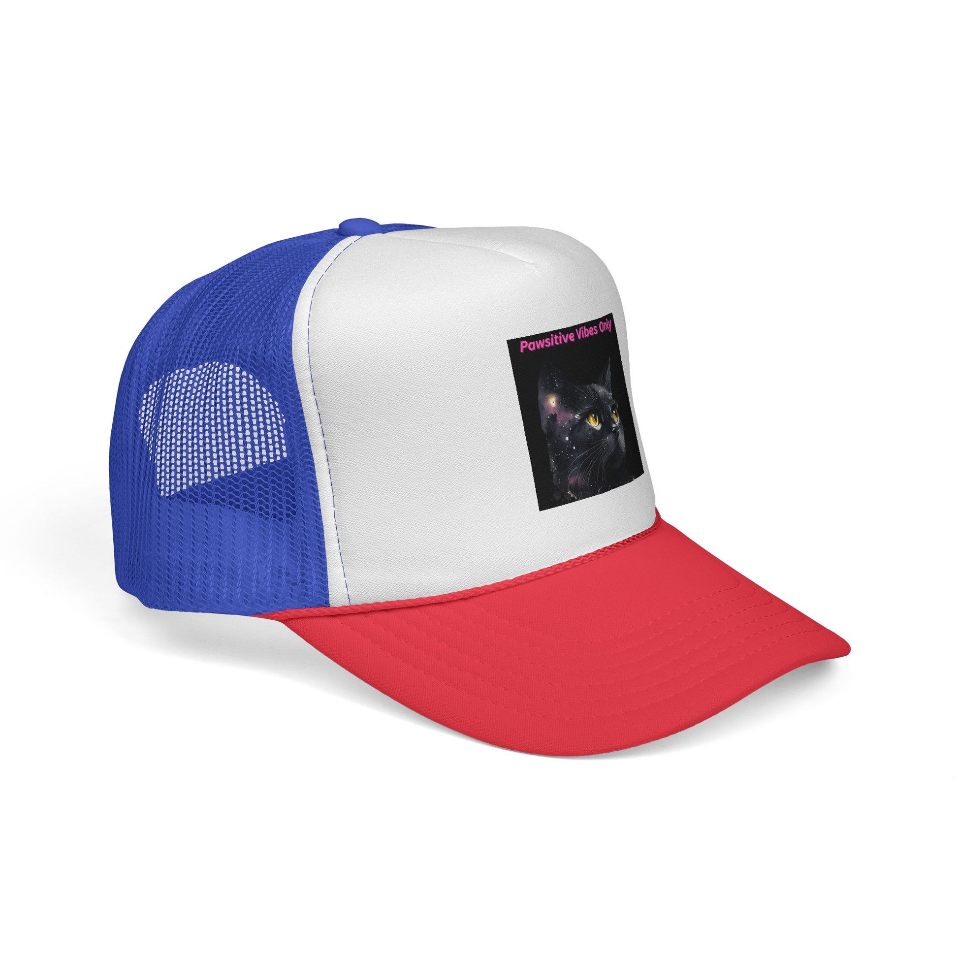 Positive Vibes Cat Trucker Cap, Fun Hat for Cat Lovers, Casual Outdoor Accessory, Birthday Gift, Summer Fashion