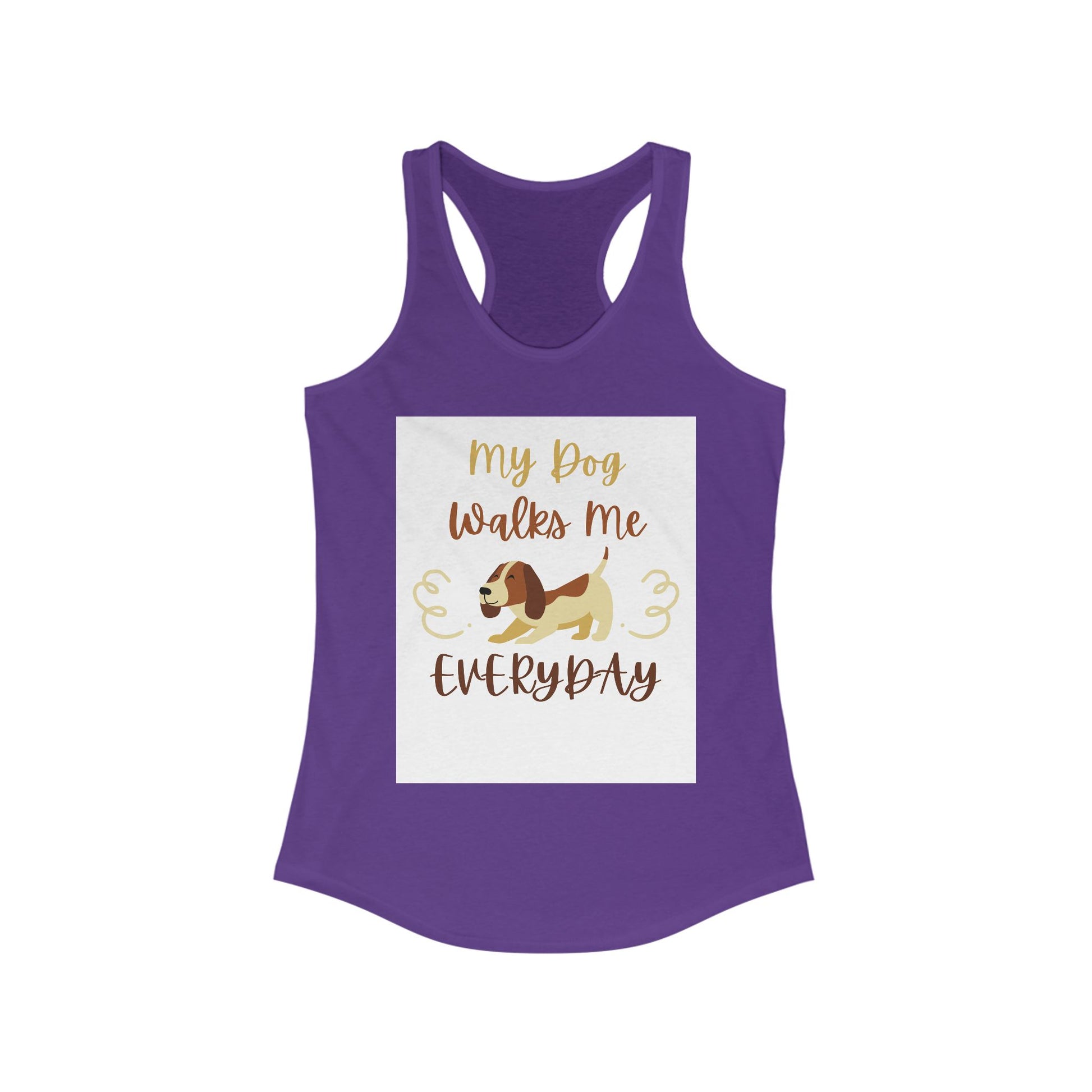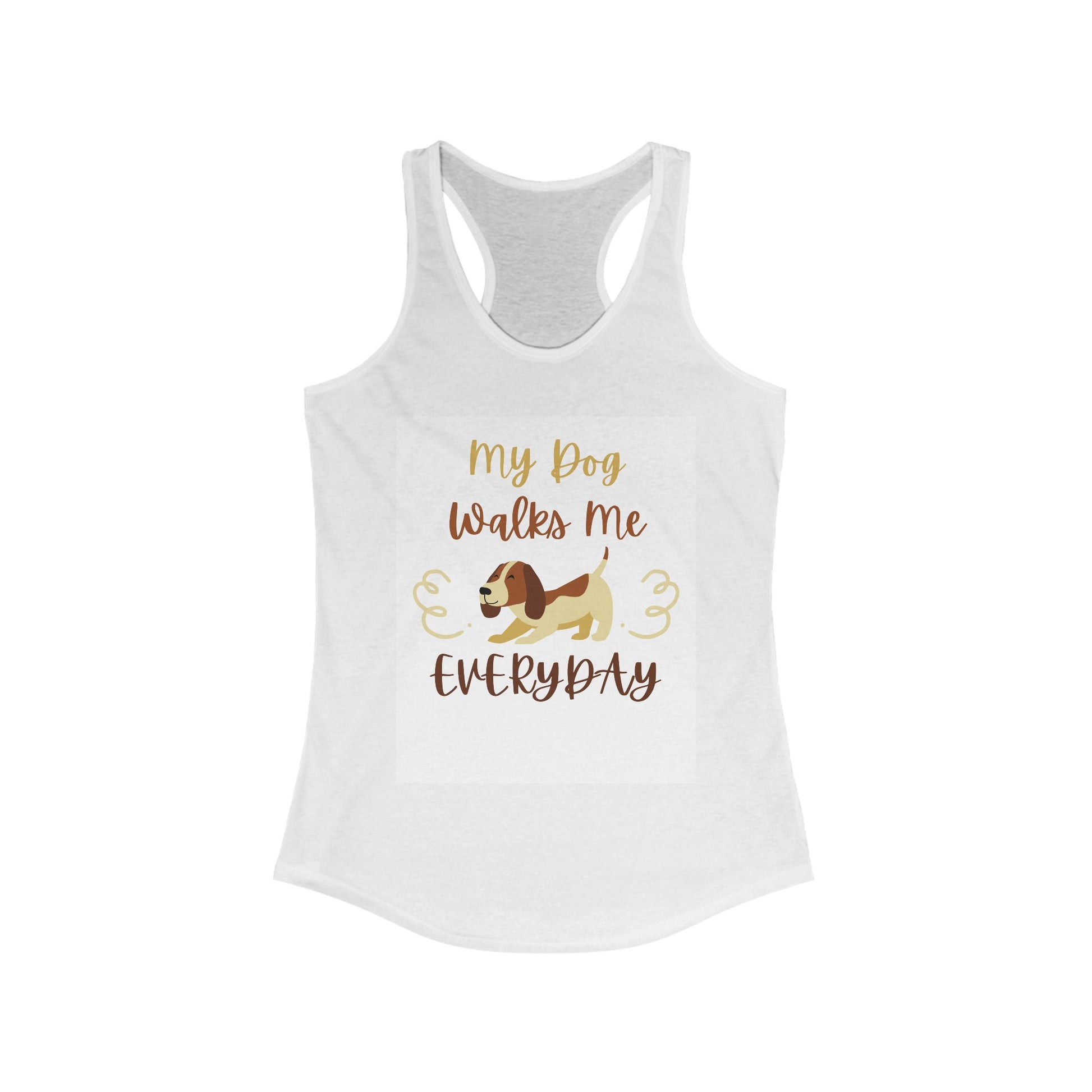 Women's Dog Lover Racerback Tank - My Dog Walks Me Everyday, Pet Gift, Dog Mom Apparel, Summer Top, Dog Walking Shirt